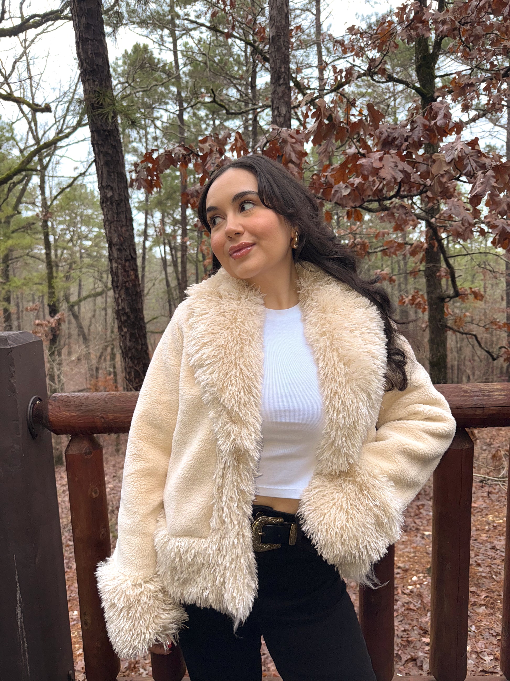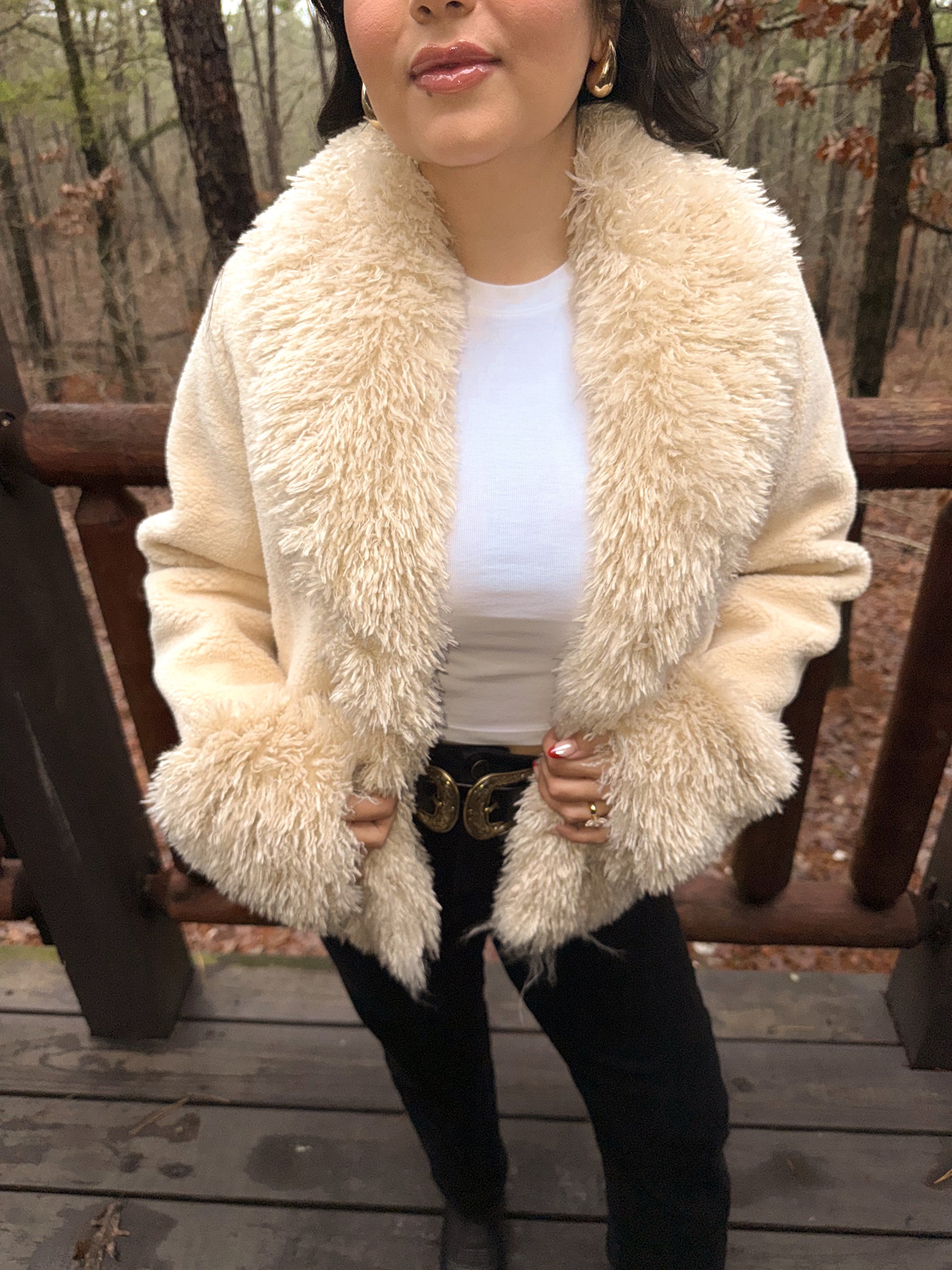 Our Aspen fur coat is a gorgeous sherpa jacket featuring faux fur, pockets, and a relaxed fit. But let's be real... she needs no explanation. We fear you need her!