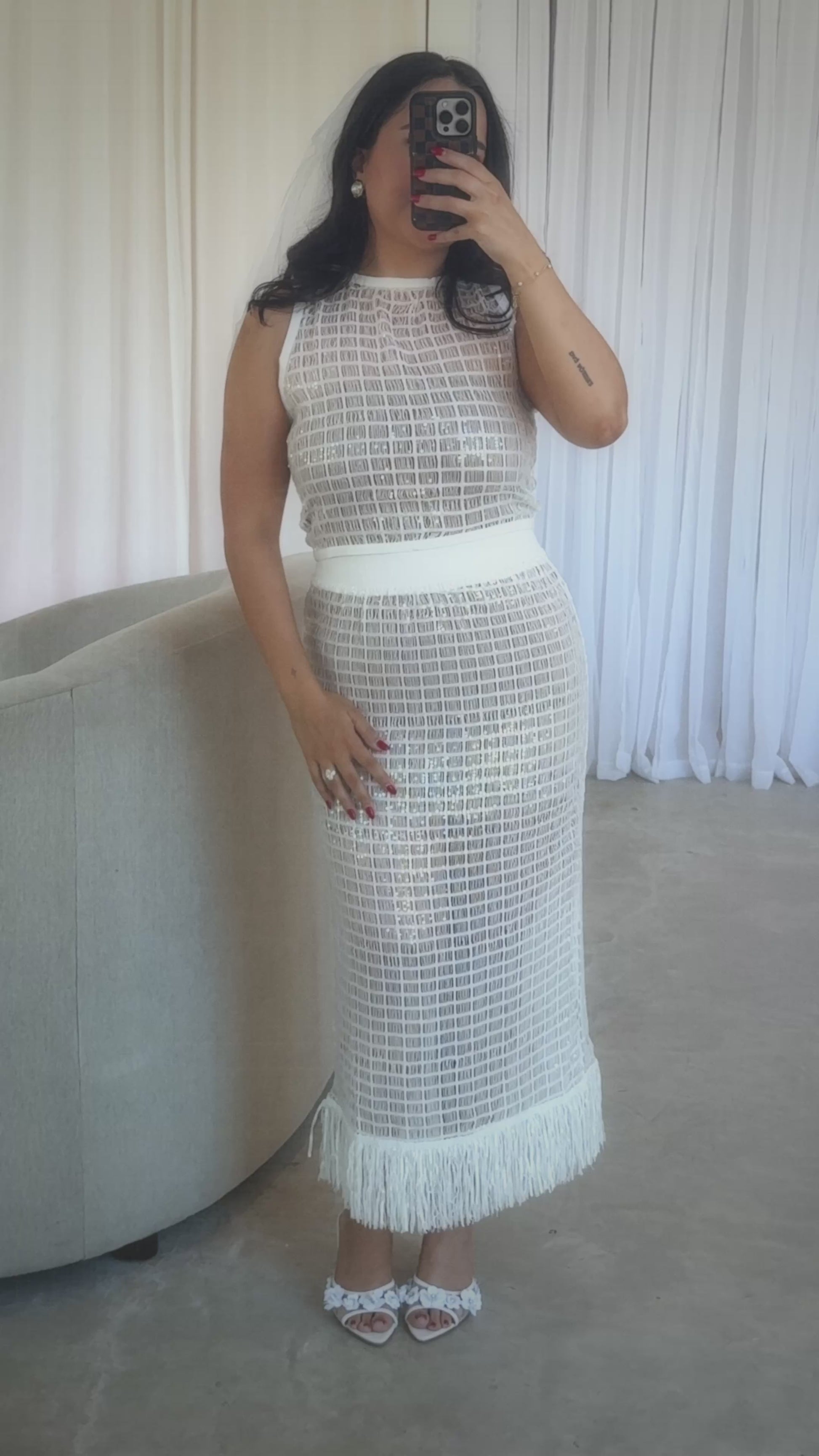 Our Last Fling top is a sequins net cover-up tank for all your Bachelorette plans. Featuring a see-through pattern and the shiniest sparkles, she would be perfect as a swimsuit cover up or with a neutral slip for your night out on the town. Pair her with our matching Last Fling skirt for a complete look.