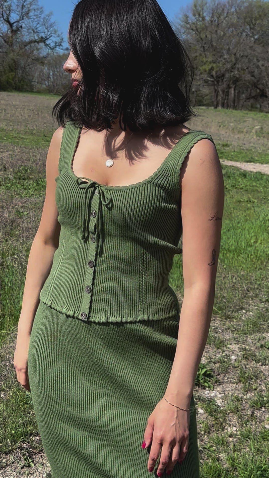 Our Meadow Set was inspired by Spring days in the sunshine. This sweater set features a tie-front, set buttons, and a gorgeous midi skirt. Pair her with cowgirl boots and live your best life this season.