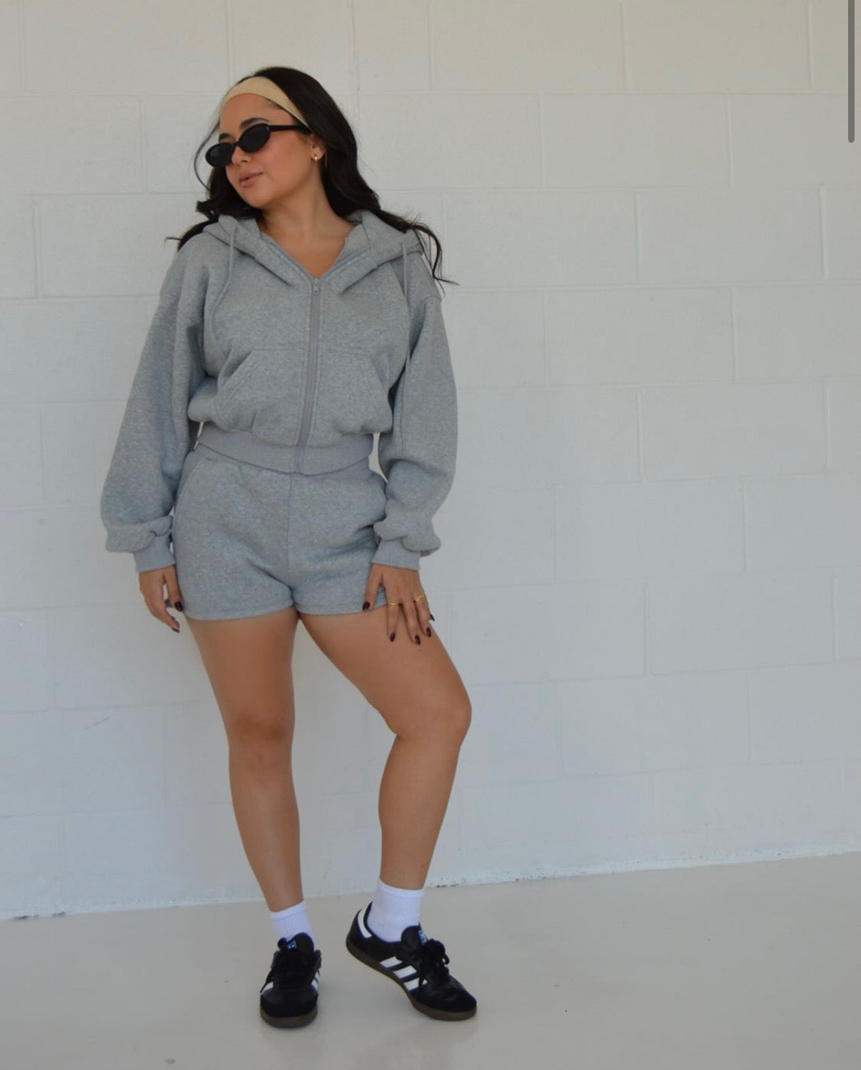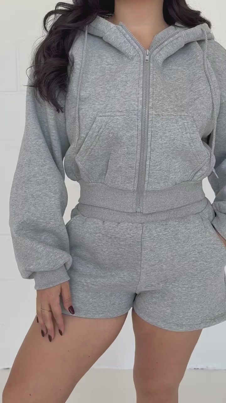 Our Sundays Set is a two-piece set featuring an oversized cropped hoodie and sweat shorts, both with pockets. It is the coziest, fleece material rivaling all your favorite brands at a fraction of the price. Pair her with your fav sneakers and you're ready for all your day-off activities.